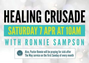 We believe prayer changes things! Join us for the Healing Crusade with Pastor Ronnie Sampson on Saturday 7 April at 10am in The Chapel. Bring all those who are sick and in need of healing!