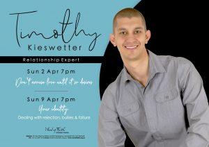 A relationship coach and therapist, Timothy Kieswetter is famous for his hilarious and brutally honest teachings on the psychological, physical and spiritual aspects of relationships. Having authored a number of books, Timothy offers both a scriptural and practical view on relationships, he has been happily married to his wife, Janet, for thirteen years and the couple have five daughters.